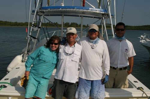 Just returned from the beautiful Crocodile Bay Lodge after fishing with the winners of the Marlin’s Biggest Fan contest, Mike Lawrence and Claudia Cooper from Seattle, Washington. Really super people, which was a great relief because you never know who’s going to win one of this things! We had a terrific time together and got into the fish a little bit. The first day started out pretty slow, but the bite turned on at about 2:30 and we caught three sails out of about 8 bites.